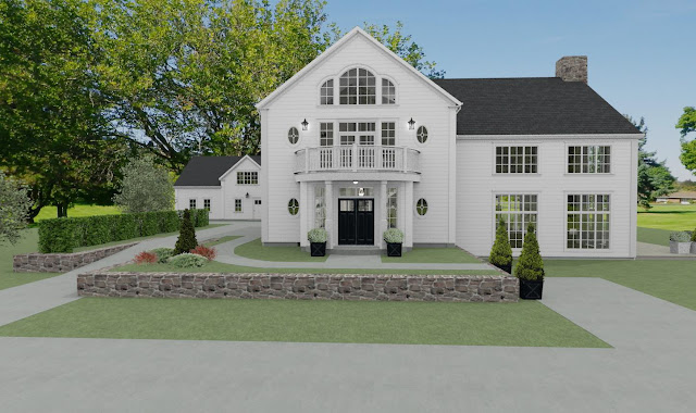 Bygglovshandlingarna är inlämnade och klara för detta hus i New England stil med tillhörande flygel.