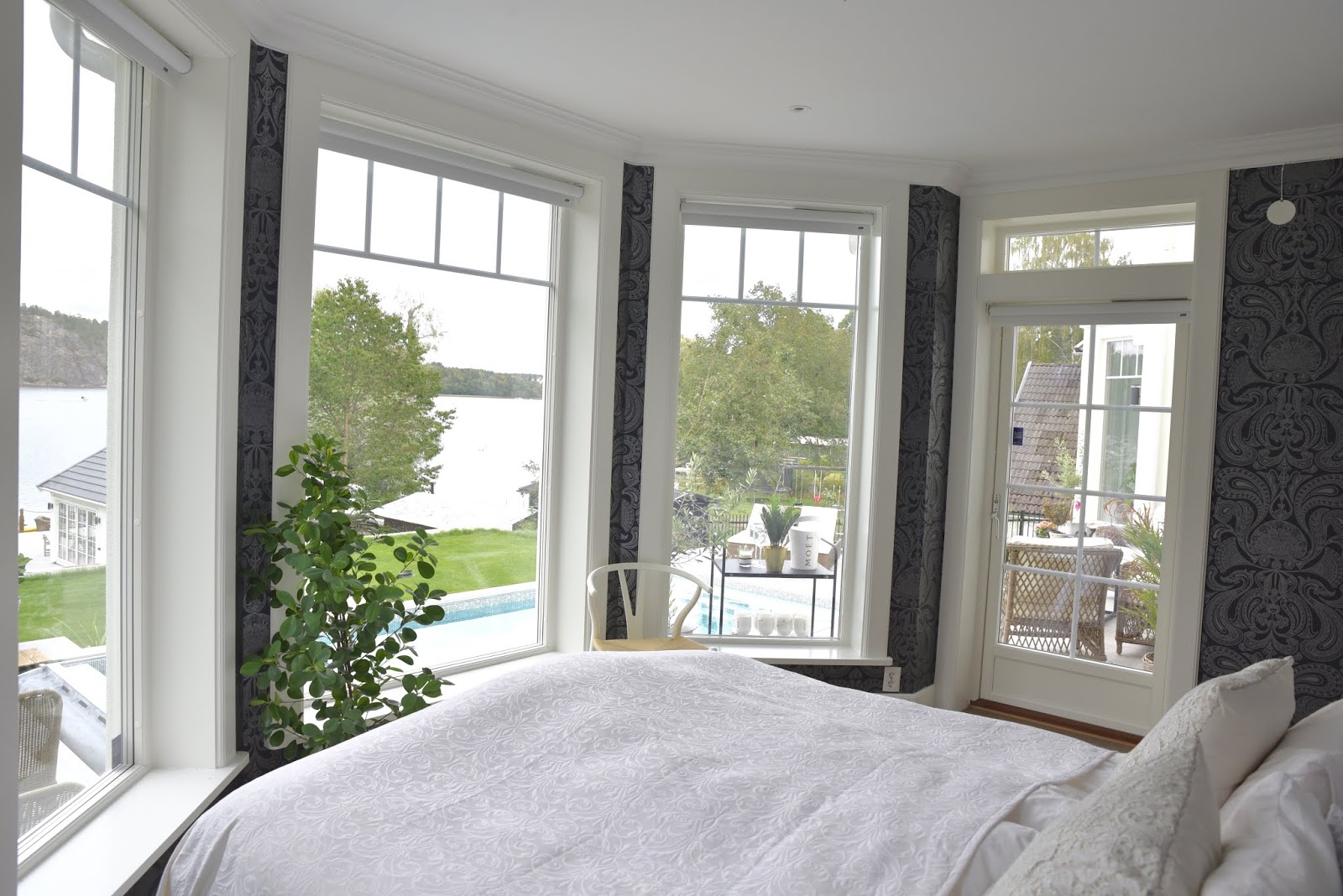 Master bedroom med tillhörande walk-in closet och eget badrum har också en magnifik utsikt över vattnet. Visst kan man vakna till detta varje morgon?