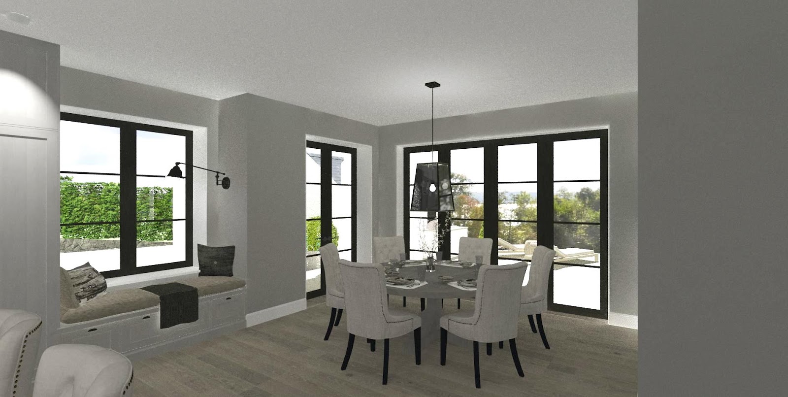 Det kommer bli ett riktigt läckert hus med vikdörrar ut mot uteplats och poolområde.